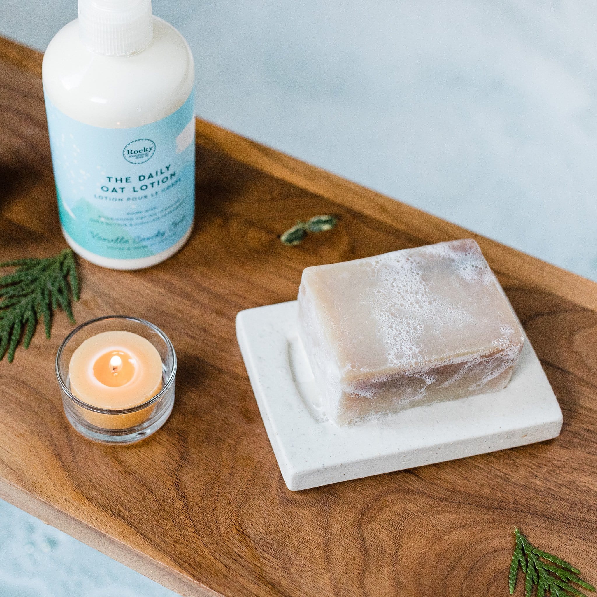 Soap dishes that are made by hand with love and Atelier Trema’s unique stoneware clay recipes in the Eastern Townships, Quebec. Beautifully handcrafted and fired, with indented slats to let your bar soap breathe and last longer.